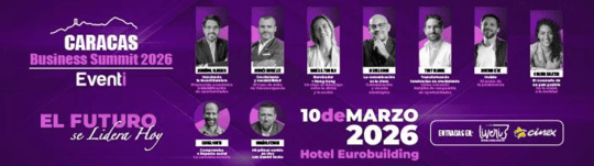 En un entorno económico que demanda respuestas claras y visión de largo plazo, Eventi anuncia la llegada del Caracas Business Summit 2026: «El Futuro se Lidera Hoy», que se llevará a cabo en el Salón Plaza Real del Hotel Eurobuilding, donde recibirá a 800 líderes, emprendedores y tomadores de decisiones, de los diversos sectores productivos.