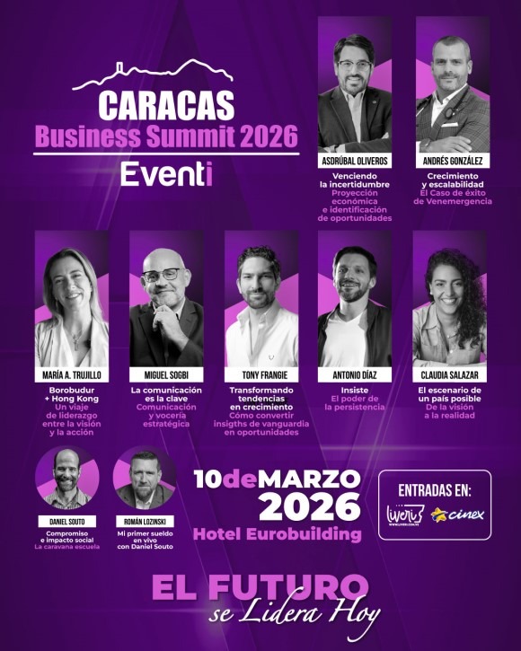 Las entradas para el Caracas Business Summit 2026 pueden encontrarse en la página de Livery y Cinex, o a través de las redes sociales de Eventi; así como más información también por @eventi.la en Instagram.