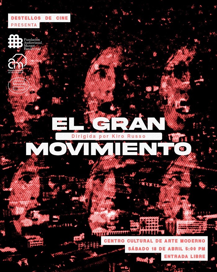 El proyecto de difusión cinematográfica de la Fundación Margot Benacerraf continúa su programación con la premiada película boliviana El gran movimiento de Kiro Russo, ganadora del Premio Especial del Jurado en la Sección Horizontes del Festival de Venecia. La función se llevará a cabo el sábado 18 de abril de 2026, a las 5:00 p.m., en la Sala de Auditorio del Centro Cultural de Arte Moderno CCAM, en La Castellana, con entrada libre.