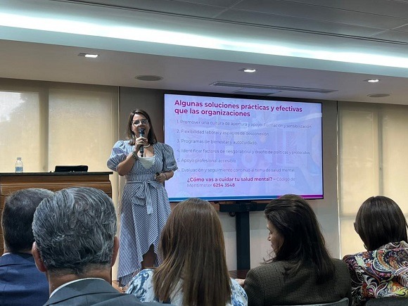 Por su parte, la Dra. Yorelis Acosta, psicóloga y coordinadora de investigaciones del CENDES–UCV, ofreció la charla “Salud mental en las empresas”, donde subrayó la necesidad de incorporar la gestión emocional y el bienestar psicológico como componentes esenciales de la estrategia organizacional.