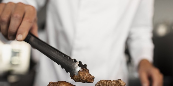 Solución: Las pinzas (o espátulas, en su defecto) te permiten manipular la carne sin perforarla. Al sujetar el corte por los lados, la capa externa sellada permanece intacta, asegurando que todos los jugos permanezcan dentro de las fibras musculares.