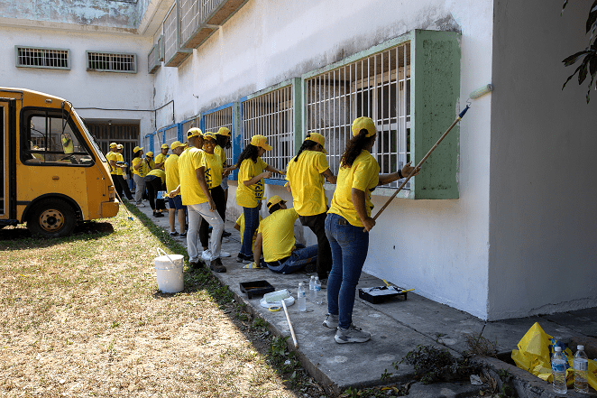 De este modo, la actividad no solo se centró en mejorar el aspecto físico de la casa hogar, sino que también sirvió como un espacio para compartir y reafirmar el compromiso y disposición. Armados con brochas y muchas ganas, los participantes lograron renovar significativamente diversas áreas de la institución, como la fachada, patio y salón principal; creando un ambiente más acogedor para las pequeñas residentes. La Casa Hogar Padre Febres Cordero ahora luce revitalizada, gracias al esfuerzo conjunto que va más allá de las responsabilidades diarias y que deja una huella tangible.