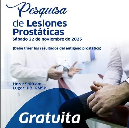 Con el propósito de incentivar la prevención y facilitar la detección oportuna, el GMSP realizará una jornada especial de Pesquisa de Lesiones Prostáticas el próximo sábado 22 de noviembre, a partir de las 9:00 a.m.