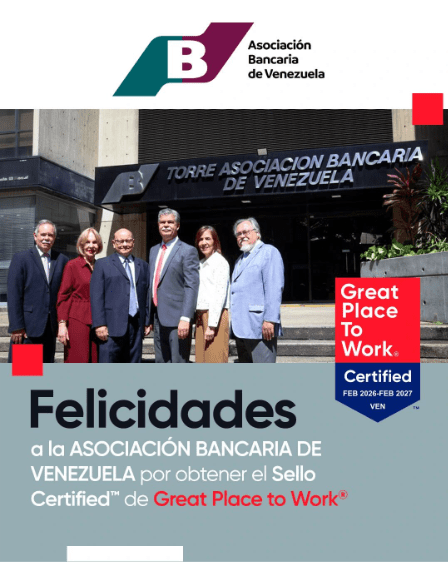 Great Place to Work® Venezuela, anunció la obtención de esta certificación por parte de la Asociación Bancaria de Venezuela, un reconocimiento internacional que distingue a las organizaciones que promueven culturas laborales basadas en la confianza, la colaboración y el desarrollo profesional de sus equipos. Esta se otorga a partir de evaluaciones directas de los colaboradores y del análisis de las prácticas organizacionales, lo que permite validar la experiencia laboral dentro de la institución.