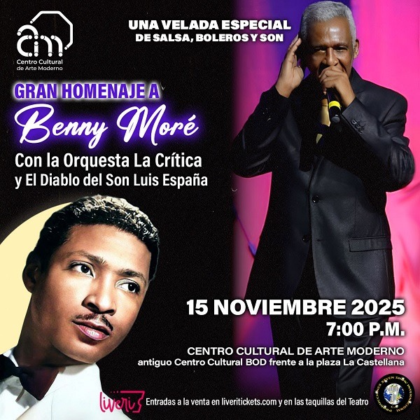 La cita con la memoria y la buena música tiene fecha: sábado 15 de noviembre, a las 7 p.m., cuando la Orquesta La Crítica suba al escenario del Centro Cultural de Arte Moderno de Caracas para celebrar la vida y legado del legendario Benny Moré, icono de la música cubana y caribeña, considerado una de las más grandes voces del siglo XX, también conocido como «El Príncipe del Mambo», «El Sonero Mayor» y «El Bárbaro del Ritmo».