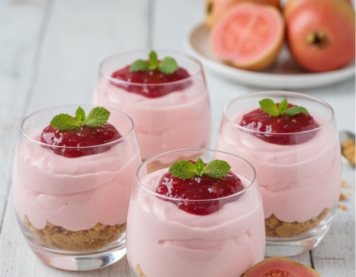 5. Presentación: Servir en copas sobre la base de galletas trituradas y coronar con una cucharada adicional de mermelada de guayaba pura para resaltar el brillo y el aroma frutal.