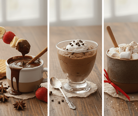 1. Fondue cremoso de chocolate y especias Al calentar la Bebida Chocolatada Natulac a fuego lento junto a una rama de canela, se obtiene una base de fondue perfecta. La concentración del cacao venezolano permite que la mezcla mantenga su brillo y densidad sin necesidad de espesantes artificiales. Es la opción ideal para acompañar frutas frescas o galletas en una merienda de alto nivel.
