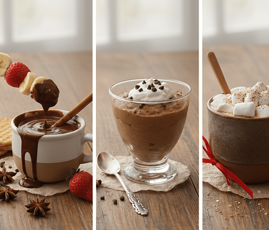 1. Fondue cremoso de chocolate y especias Al calentar la Bebida Chocolatada Natulac a fuego lento junto a una rama de canela, se obtiene una base de fondue perfecta. La concentración del cacao venezolano permite que la mezcla mantenga su brillo y densidad sin necesidad de espesantes artificiales. Es la opción ideal para acompañar frutas frescas o galletas en una merienda de alto nivel.