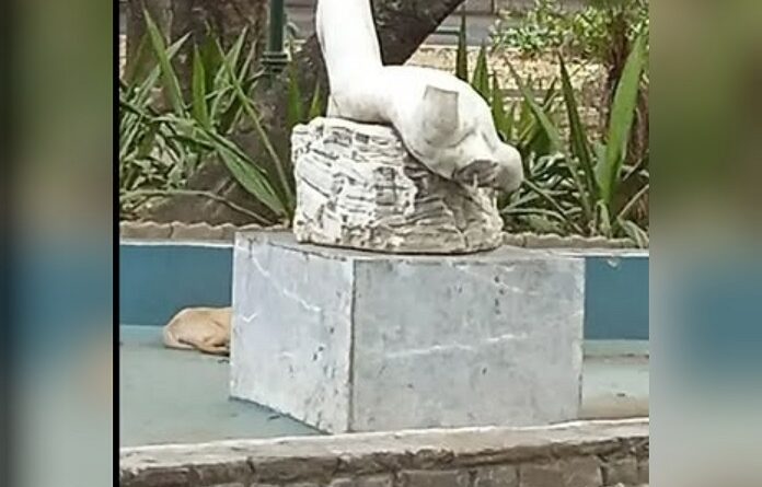 ​Se trata de la escultura de «Narciso», una joya de naturalismo idealizado ubicada en la Plaza Madariaga. Tallada en mármol de Carrara hacia 1953, la obra es atribuida al artista E. Saverso Palezzi (o Salvesio Paleéis). Verla así —mutilada, despojada de su dignidad y reposando en el fondo de una fuente seca, maloliente y convertida en vertedero— me provocó una mezcla de rabia y una profunda tristeza.