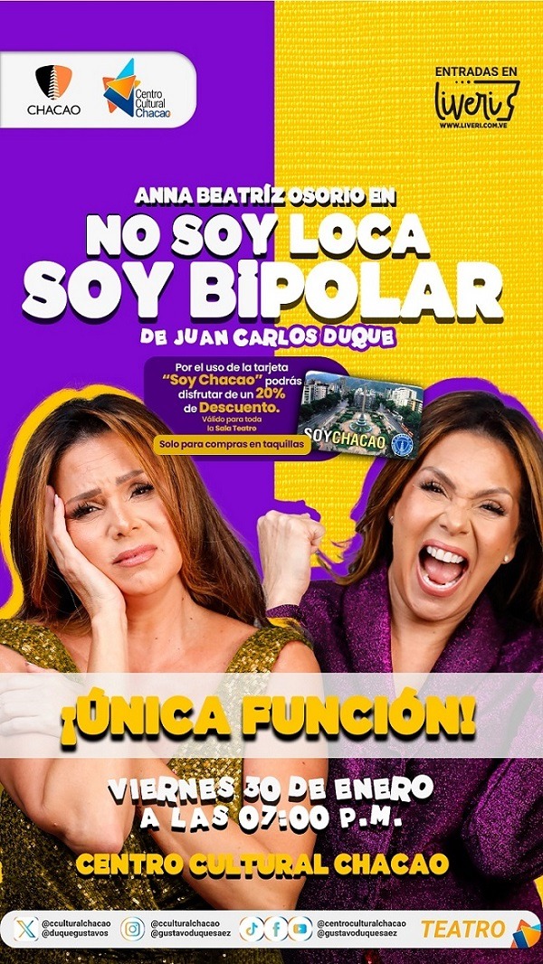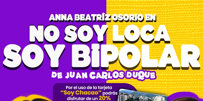 Regresa a petición del público: “No Soy Loca Soy Bipolar” escrita y dirigida por Juan Carlos Duque y protagonizada por la actriz venezolana Anna Beatriz Osorio.