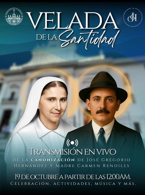 El Santuario Nuestra Señora de La Candelaria se prepara para una noche inolvidable que pasará a la historia de Venezuela. El próximo sábado 19 de octubre, el templo será el epicentro de la fe nacional al acoger la «Velada de la Santidad», un evento extraordinario para transmitir en pantalla gigante y en directo desde Roma la elevación a los altares de los dos primeros santos venezolanos: San José Gregorio Hernández y Santa Carmen Rendiles. La jornada de vigilia comenzará a las 12:00 am (medianoche).