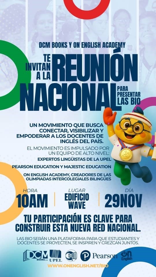 ON ENGLISH ACADEMY gracias a su profesionalismo ha logrado una vez más, aglutinar a expertos linguistas de alto nivel con el respaldo pedagógico de UPEL, Pearson Education y Majestic Education, para poner en marcha la BIO 2026 en Venezuela abarcando colegios públicos y privados desde 5to. grado de primaria hasta 5to. año de bachillerato.