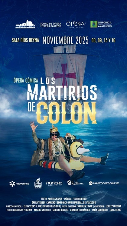 La Fundación Teatro Teresa Carreño y la Compañía Ópera Teresa Carreño se complacen en anunciar el esperado regreso a la Sala Ríos Reyna de la aclamada ópera cómica venezolana «Los Martirios de Colón». Esta producción, considerada una pieza cumbre del repertorio operístico nacional, ofrecerá funciones los días sábado 8, domingo 9, sábado 15 y domingo 16 de noviembre de 2025.