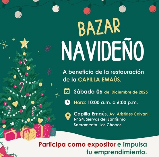 La congregación venezolana Las Siervas del Santísimo Sacramento convoca a la comunidad a participar en su primer Bazar Navideño que se celebrará el próximo sábado 6 de diciembre, una jornada solidaria que busca recaudar fondos esenciales para la reparación y el óptimo funcionamiento de la querida Capilla Emaús, ubicada en la avenida Arístides Calvani, Los Chorros en la ciudad de Caracas