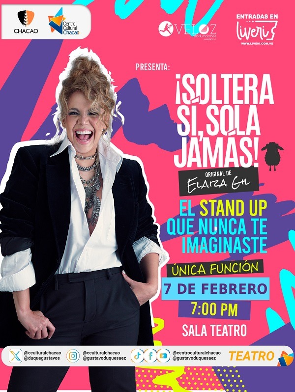 Elaiza Gil nos cuenta en “Soltera Sí, Sola Jamás”, anécdotas inimaginables de su vida y su carrera, pero, sobre todo profundizará en un tema que para ella es trascendental: la increíble experiencia de ser una mujer soltera, sin hijos, plena y feliz en el siglo XXI.