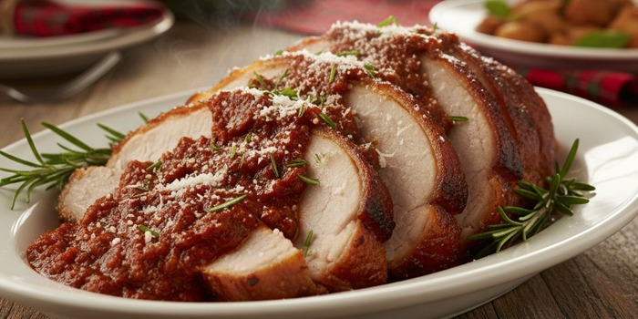 - Pernil Navideño con Salsa Tomate y Albahaca: Sírvelo cortado en rebanadas gruesas, báñalo con salsa, espolvorea queso parmesano rallado y romero fresco para un toque final. La base de tomate y carne de la bolognesa aporta profundidad, así como un sabor especiado que armoniza con el corte.
